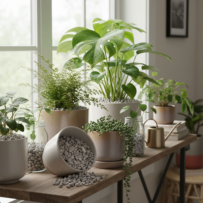 استفاده بهعنوان بستر اصلی یا لایه زهکش کف گلدان -