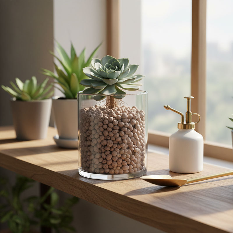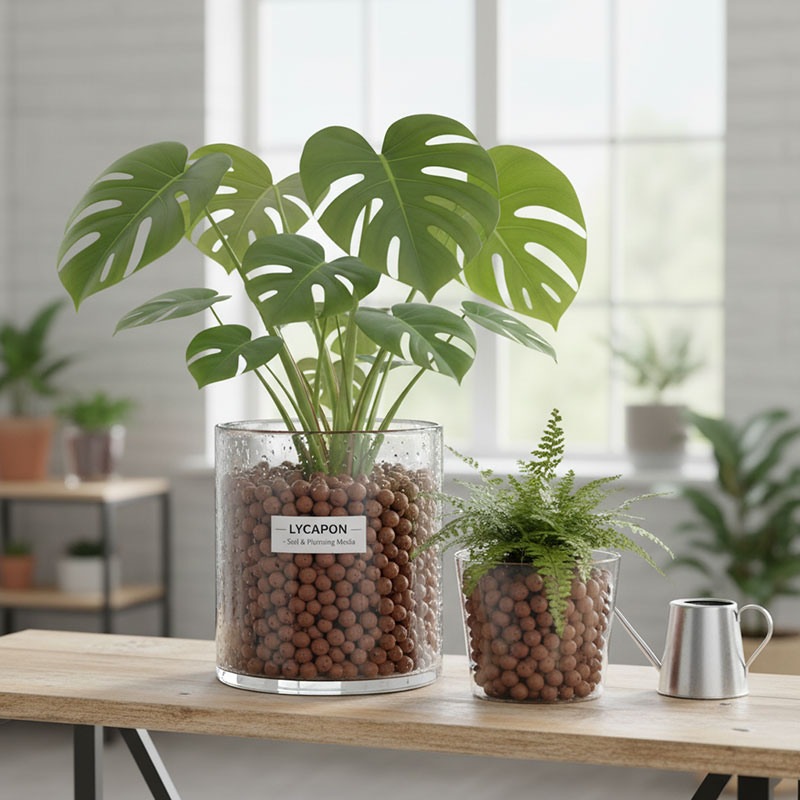 لیکا یا لیکاپون سایز ریز توانایی ذخیره آب در حفرههای خود را دارد و رطوبت را بهتدریج در اختیار ریشه قرار میدهد. این ویژگی به کاهش تنش آبی و افزایش پایداری رطوبت بستر کمک میکند.