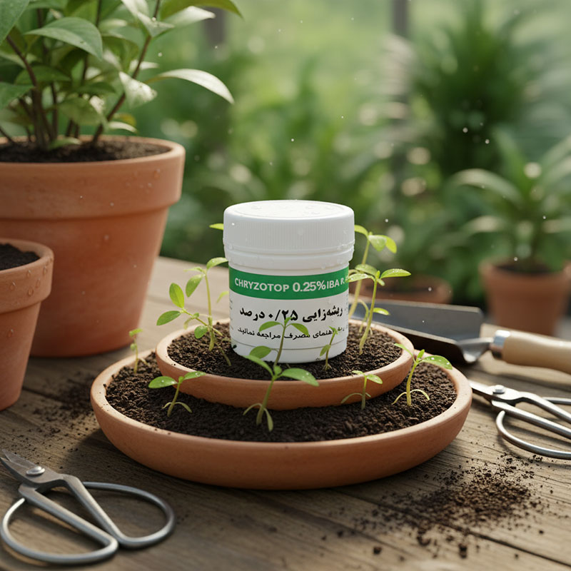⚠️ نکته کلیدی: این هورمون در آب محلول نمیشود و باید با روش غوطهور کردن قلمهها یا محلول آماده کارخانه استفاده شود.