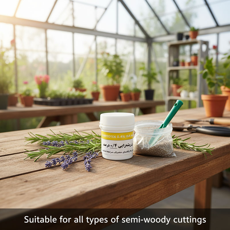⚠️ نکته کلیدی: این هورمون در آب محلول نمی‌شود و استفاده باید به روش غوطه‌ور کردن قلمه‌ها باشد.