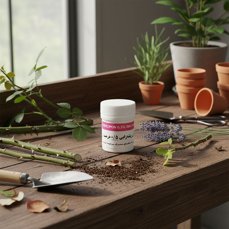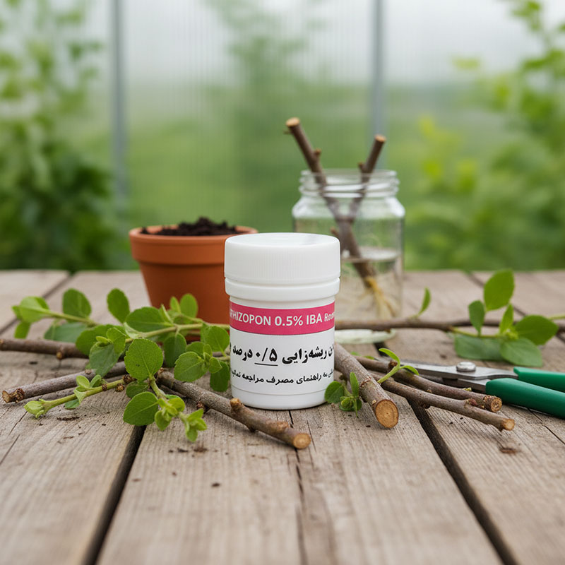 ⚠️ نکته مهم: این هورمون در آب محلول نمیشود و باید از روش غوطهور کردن قلمهها در پودر بهره برد.